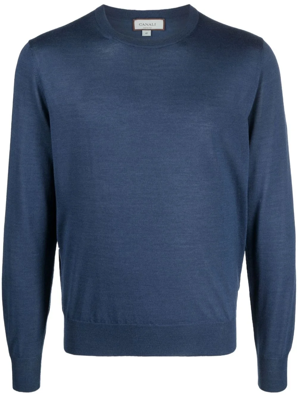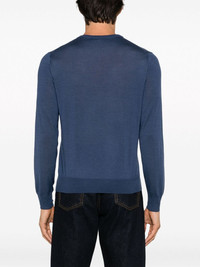 fine-knit crew-neck jumper Highlights - Blue - Fine knit - Crew neck - Long sleeves - Ribbed cuffs and hem Made in Italy Composition Cashmere 35%, Wool 35%, Silk 30% SIZE & FIT Model measurements Height 6 ft 2 in(1.89 m) Bust/Chest 37.79 in(96 cm) Hips 37 in(94 cm) Waist 29.92 in(76 cm) FittingInformation Designed for a slim fit, offering a comfortable fit that sits just away from the body Made with a lightweight knit, this piece offers some stretch This piece fits true to size – take your usual size Washing instructions Hand Wash
