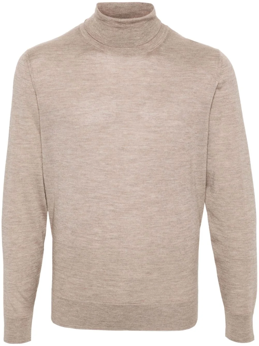 fine-knit sweater Highlights - Light brown - Wool-cashmere blend - Fine knit - Melange effect - Roll neck - Long sleeves - Straight hem Made in Italy Composition Wool 35%, Cashmere 35%, Silk 30% SIZE & FIT Model measurements Height 6 ft 2 in(1.87 m) Bust/Chest 37.79 in(96 cm) Hips 37.79 in(96 cm) Waist 30.31 in(77 cm) FittingInformation Designed for a relaxed fit, this piece allows for comfort and movement when worn The ribbed hem offers a close, comfortable fit Made with a midweight knit, this piece offers some stretch This piece fits true to size – take your usual size