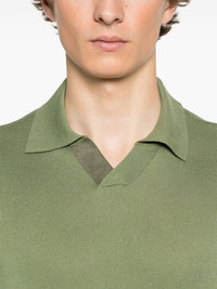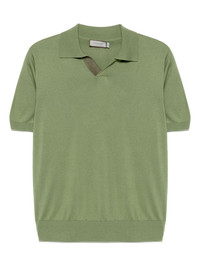 fine-knit T-shirt Highlights - Pastel green - Polo collar - V-neck - Short sleeves Made in Italy Composition Cotton 50%, Modal 50% SIZE & FIT Model measurements Height 6 ft 2 in(1.87 m) Bust/Chest 38.97 in(99 cm) Hips 37.99 in(96.5 cm) Waist 29.52 in(75 cm) FittingInformation Designed for a slim fit, offering a comfortable fit that sits just away from the body Made from a midweight non-stretch fabric, this piece offers minimal elasticity when worn Washing instructions Hand Wash