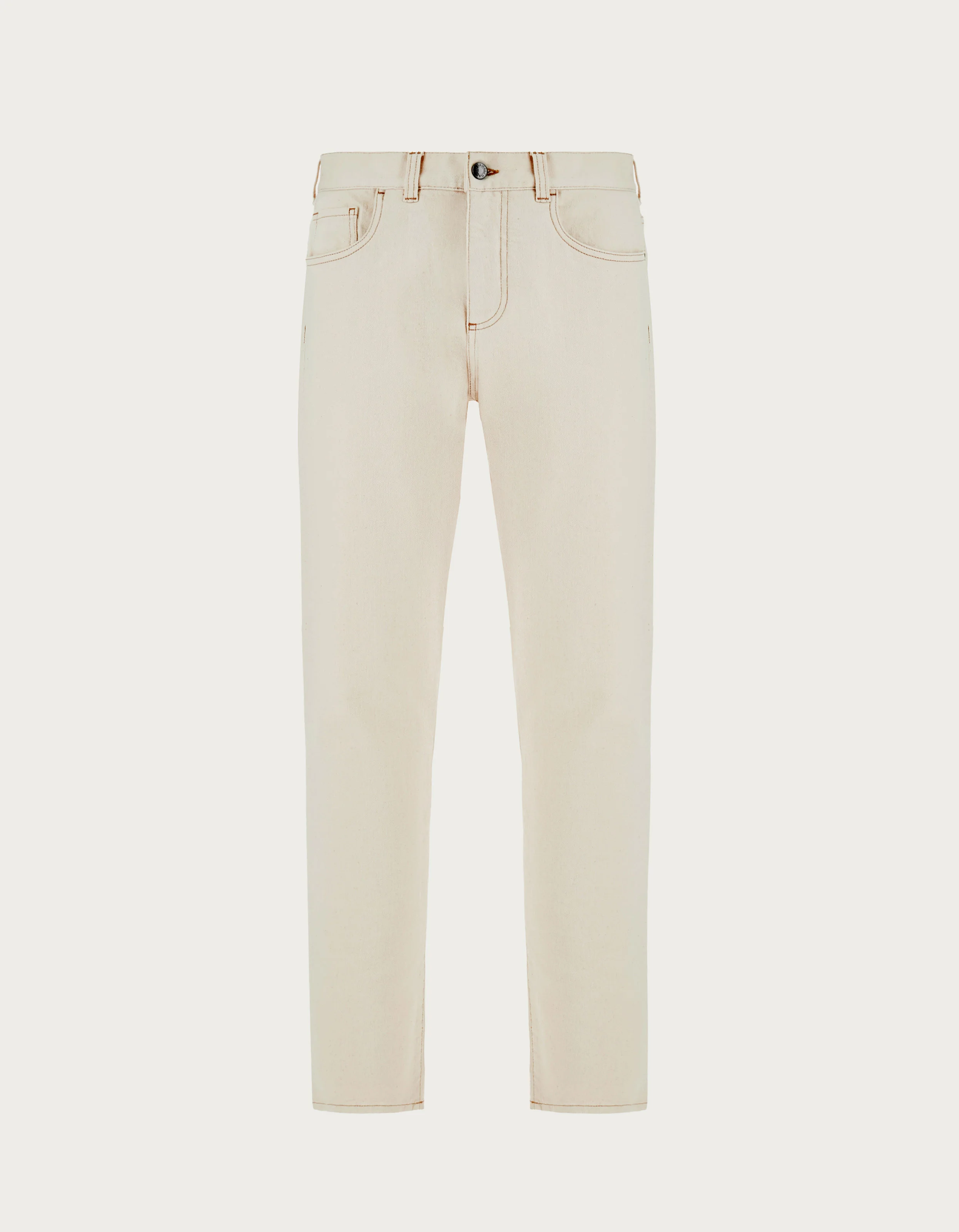 These 5-pocket bull denim pants are designed in the sleek lines of the regular fit, created to follow the silhouette while ensuring maximum comfort. In a fresh and delicate colour scheme, they are set apart by their stylistic details, including a branded metal button, genuine leather label and custom rivets. The perfect blend of understatement, style and practicality for men who always love to dress in functional and sophisticated pieces. FABRICS AND CRAFTSMANSHIP - 5-pocket denim jeans - Regular fit - Central fly with a branded metal button - Custom pocket rivets - Rear patch pockets - Washable genuine leather label on the back of the waistband - Hem width: 19 cm - Comfortable bull denim - Denim weight: 10.5 ounce - 98% cotton, 2% elastane - Made in Italy CARE Machine wash max 30° - delicate cycle Do not bleach Normal steam or dry iron on low (110°) Do not dry clean Do not tumble dry FIT Regular Fit The model is wearing a size 48 The model measures: Height: 188 cm Chest: 94 cm Waist: 75 cm Hips: 93 cm