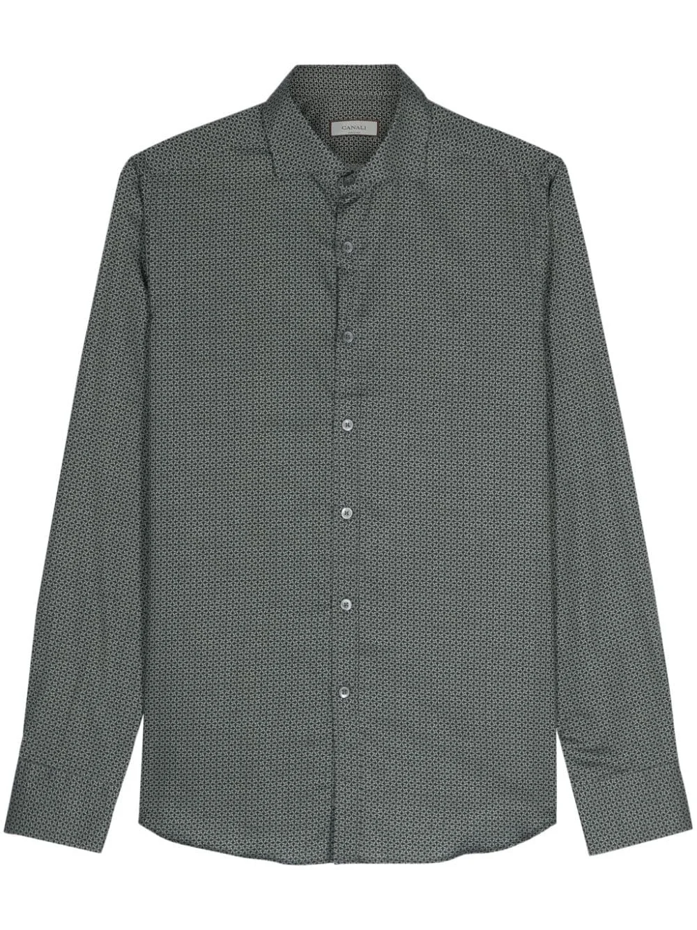 geometric-pattern cotton shirt Highlights - Dark green/grey - Cotton - Geometric-pattern print - Classic collar - Long sleeves with buttoned cuffs - Curved hem - Front button fastening Made in Italy Composition Cotton 100%