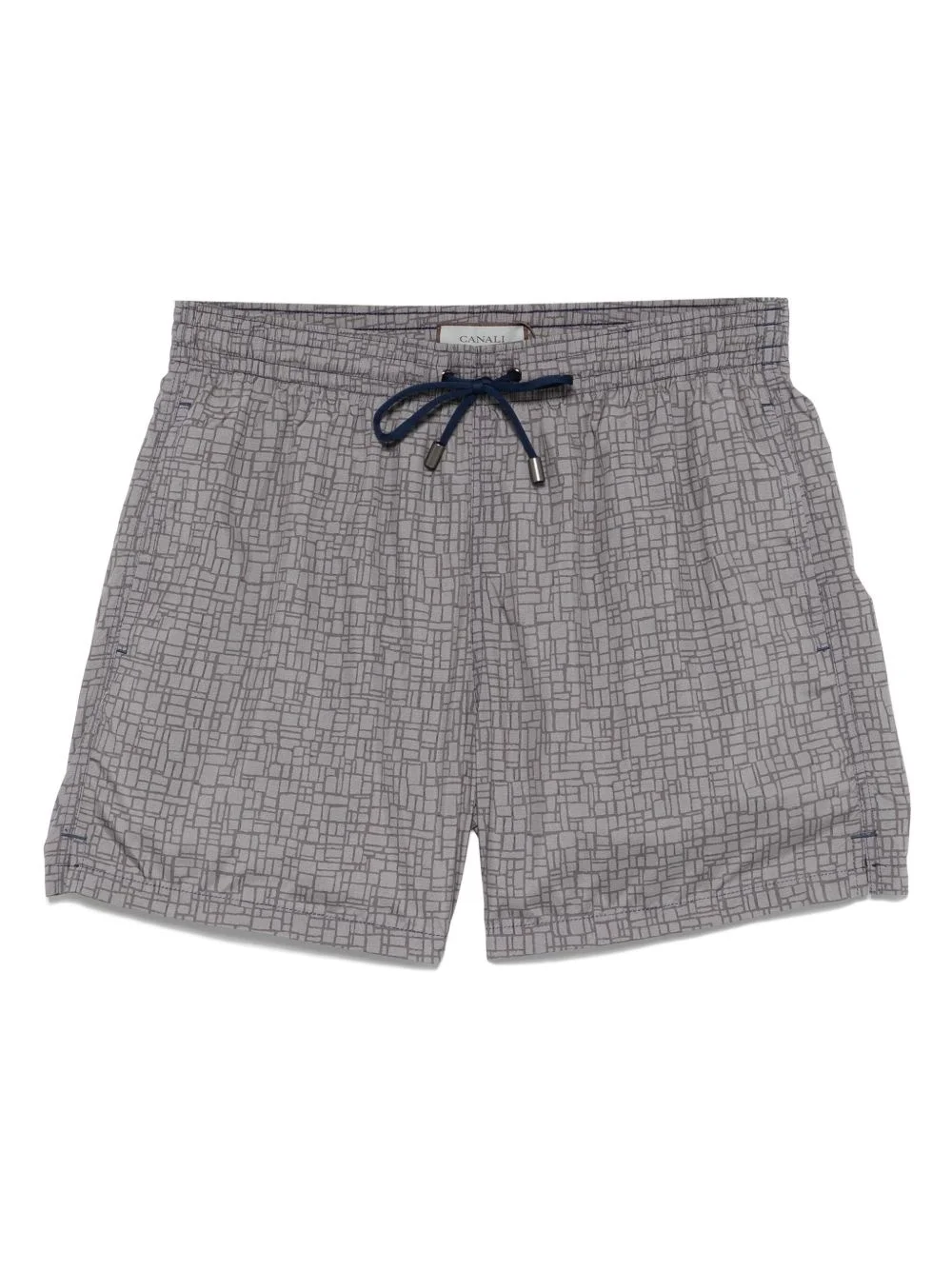graphic-print swim shorts Highlights - Medium grey - Elasticated drawstring waistband - Two side slit pockets - Rear flap pocket - Be mindful to try on swimwear over your own garments. Made in Italy Composition Outer: Polyester 100% Lining: Polyamide 100%