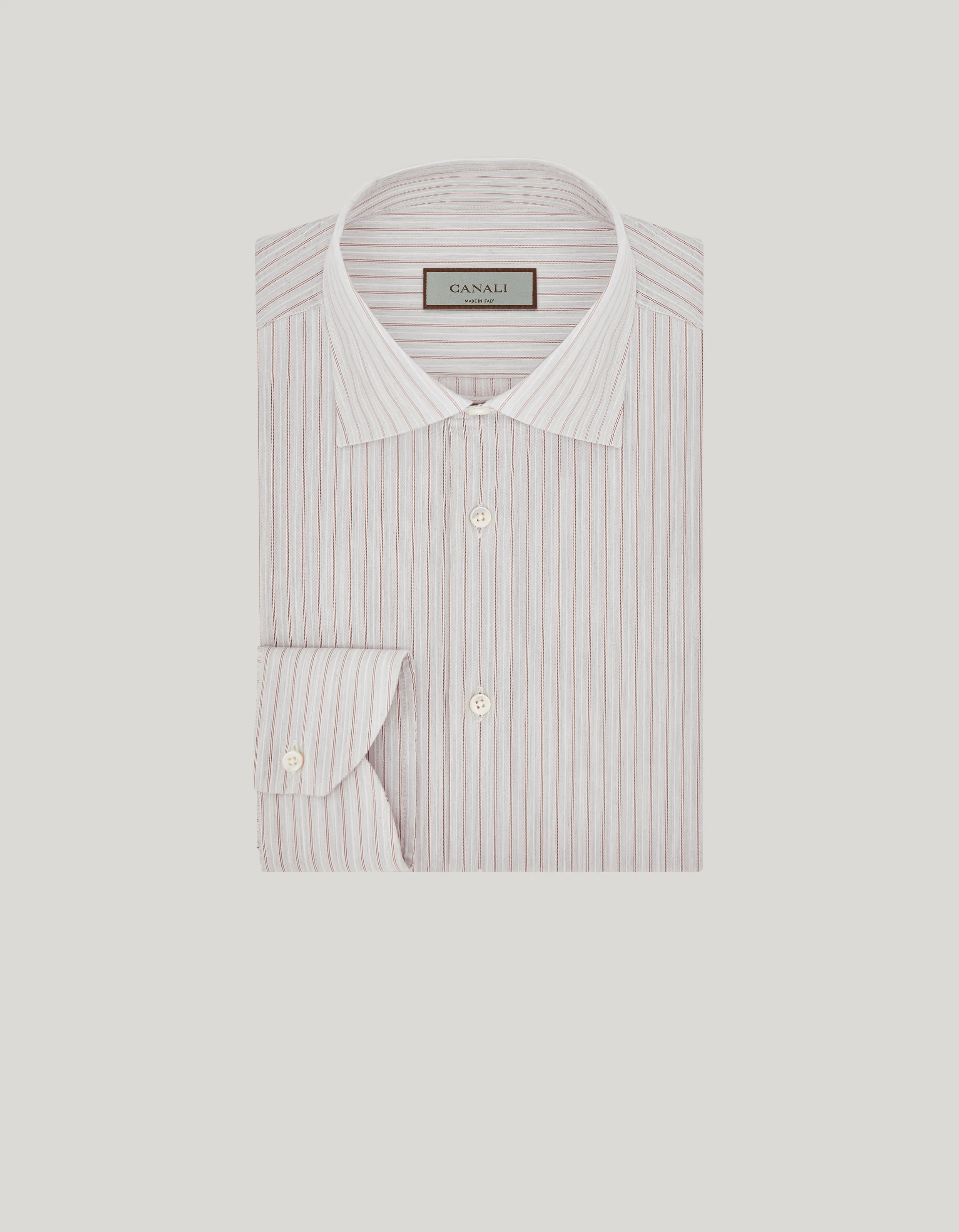 This regular fit shirt is made of an innovative stretch fabric that combines elegance and comfort, making it perfect for the contemporary, dynamic man. The clean design and button placket provide a refined, timeless look, while the superior fabric ensures that the shirt maintains an impeccable appearance while offering extraordinary freedom of movement. A must-have of great versatility that suits both formal and casual settings. FABRICS AND CRAFTSMANSHIP - Formal shirt - Semi-spread collar - Collar height 4.2 cm - Removable collar stiffeners - Plain back with no wrinkles - Plain front with no placket - Semi-rounded cuff - 57% Lyocell 43% Elastomultiester - Made in Italy CARE Machine wash max 30° - delicate cycle Do not bleach Normal steam or dry iron on low (110°) Gentle dry clean with perchlorethylene Do not tumble dry FIT Regular fit The model is wearing a size 48 The model measures: Height: 186 cm (73.2 in) Chest: 81 cm (31.9 in) Waist: 70 cm (27.6 in) Hips: 82 cm (32.3 in)
