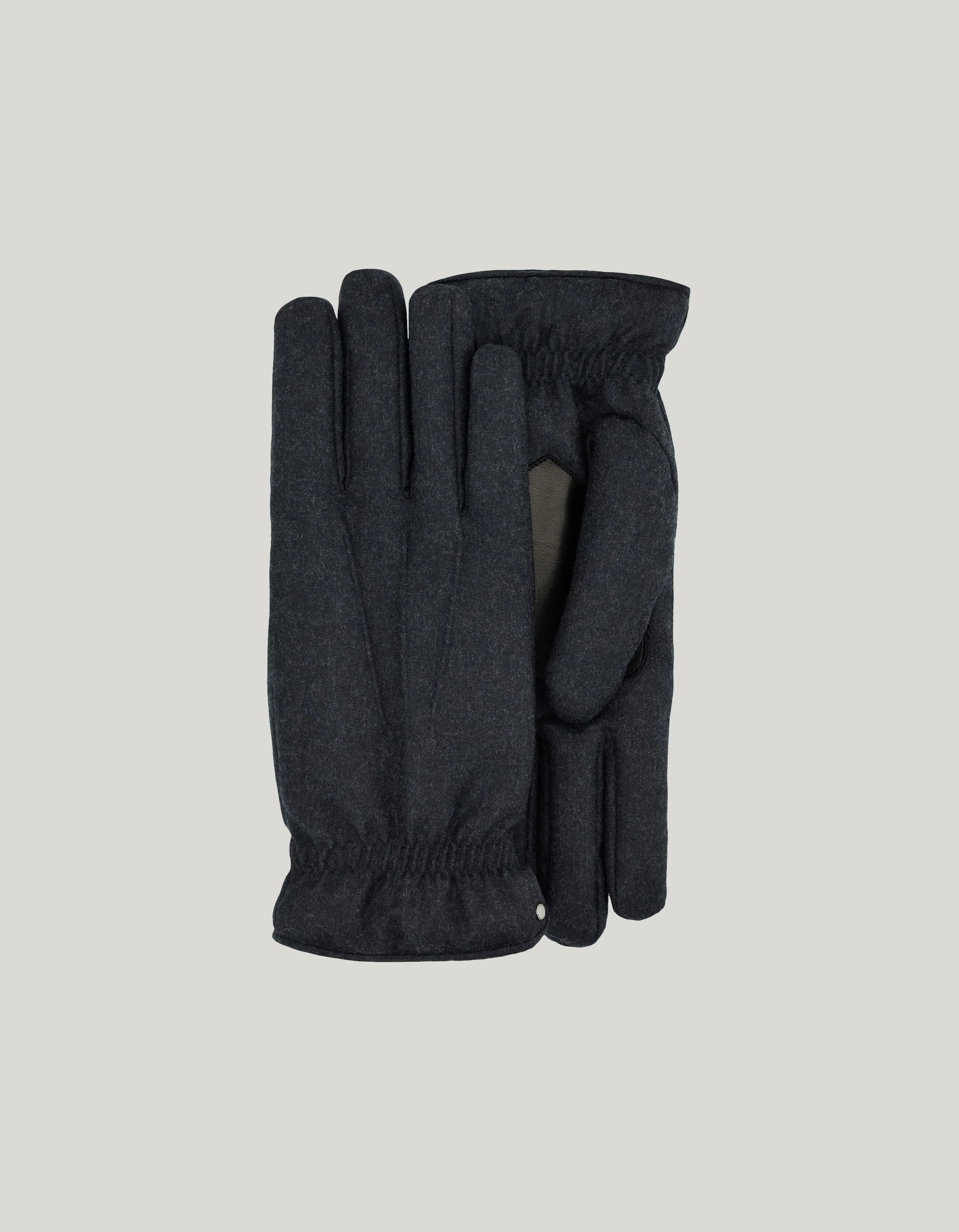 GRAY WOOL GLOVES WITH CASHMERE LINING AND LEATHER DETAILS