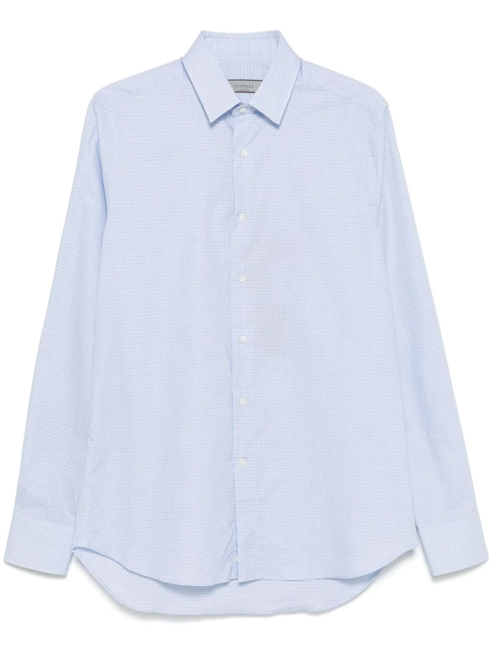 grid-pattern shirt Highlights - Light blue - Front button fastening - Buttoned cuffs - Classic collar - Long sleeves Made in Italy Composition Cotton 100% SIZE & FIT Model measurements Height 6 ft 0 in(1.84 m) Bust/Chest 35.82 in(91 cm) Hips 37 in(94 cm) Waist 28.34 in(72 cm) FittingInformation Designed for a slim fit, offering a comfortable fit that sits just away from the body Made from a midweight non-stretch fabric