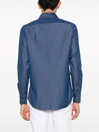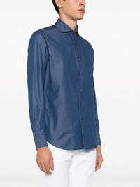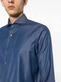 spread-collar cotton-blend shirt Highlights - Imperial blue - Cotton-lyocell blend - Spread collar - Front button fastening - Long sleeves - Buttoned cuffs - Curved hem Made in Italy Composition Cotton 66%, Lyocell 34% SIZE & FIT Model measurements Height 6 ft 2 in(1.87 m) Bust/Chest 36.41 in(92.5 cm) Hips 35.43 in(90 cm) Waist 29.52 in(75 cm) FittingInformation Designed for a regular fit, allowing for a comfortably loose fit throughout the body Made from a midweight non-stretch fabric This piece fits true to size – take your usual size Washing instructions Machine Wash