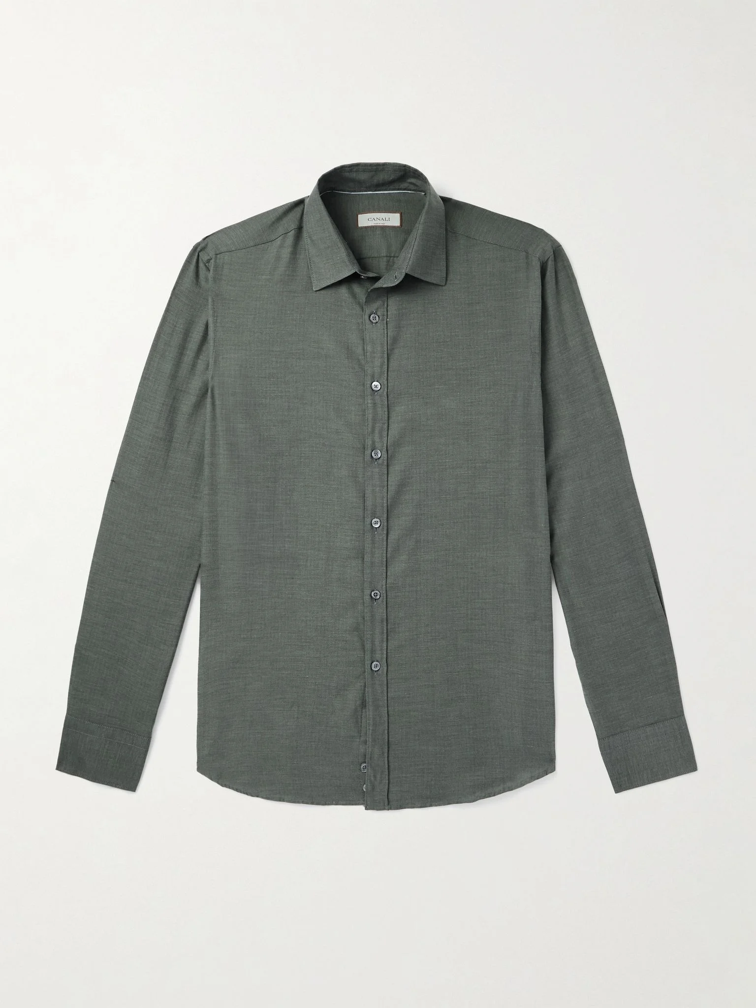 Relaxed and crafted with Italian precision, Canali's long-sleeve shirt is a versatile option for both warm and cooler months. It's cut from herringbone cotton in a cool grey-green. Size & Fit - Fits true to size, however those who are between sizes should take the larger size - Designed for a relaxed fit - Lightweight, non-stretchy fabric - Model is shown wearing a L - Model measures: chest 38"/ 96cm, height 6'2"/ 188cm Details & Care - Grey-green cotton - Button fastenings - 100% cotton - Machine wash - Mother-of-pearl: Vietnam