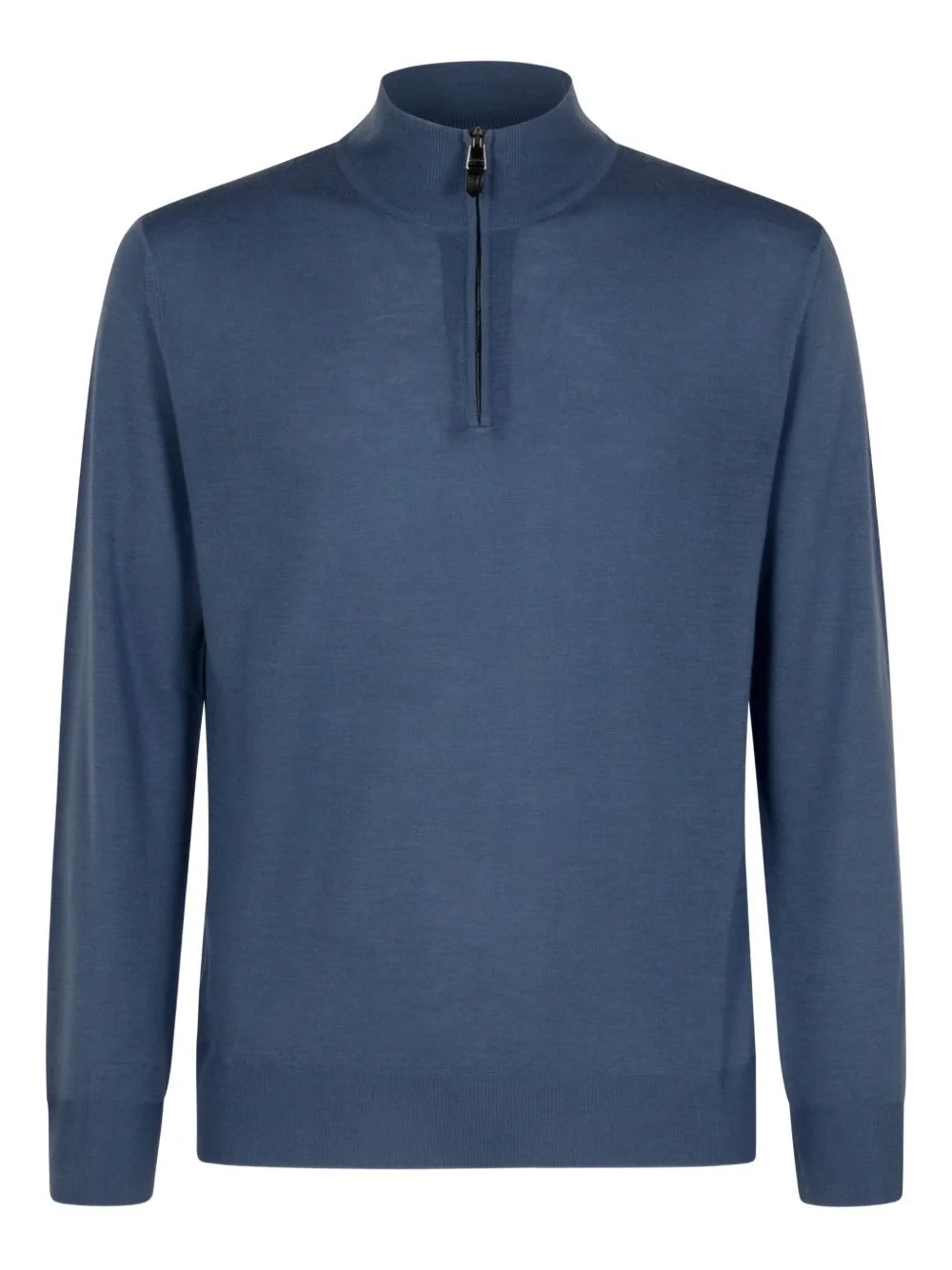 high-neck half-zip sweater Highlights - Steel blue - Half-zip fastening - Long sleeves - Ribbed cuffs - High neck Made in Italy Composition Merino 100%
