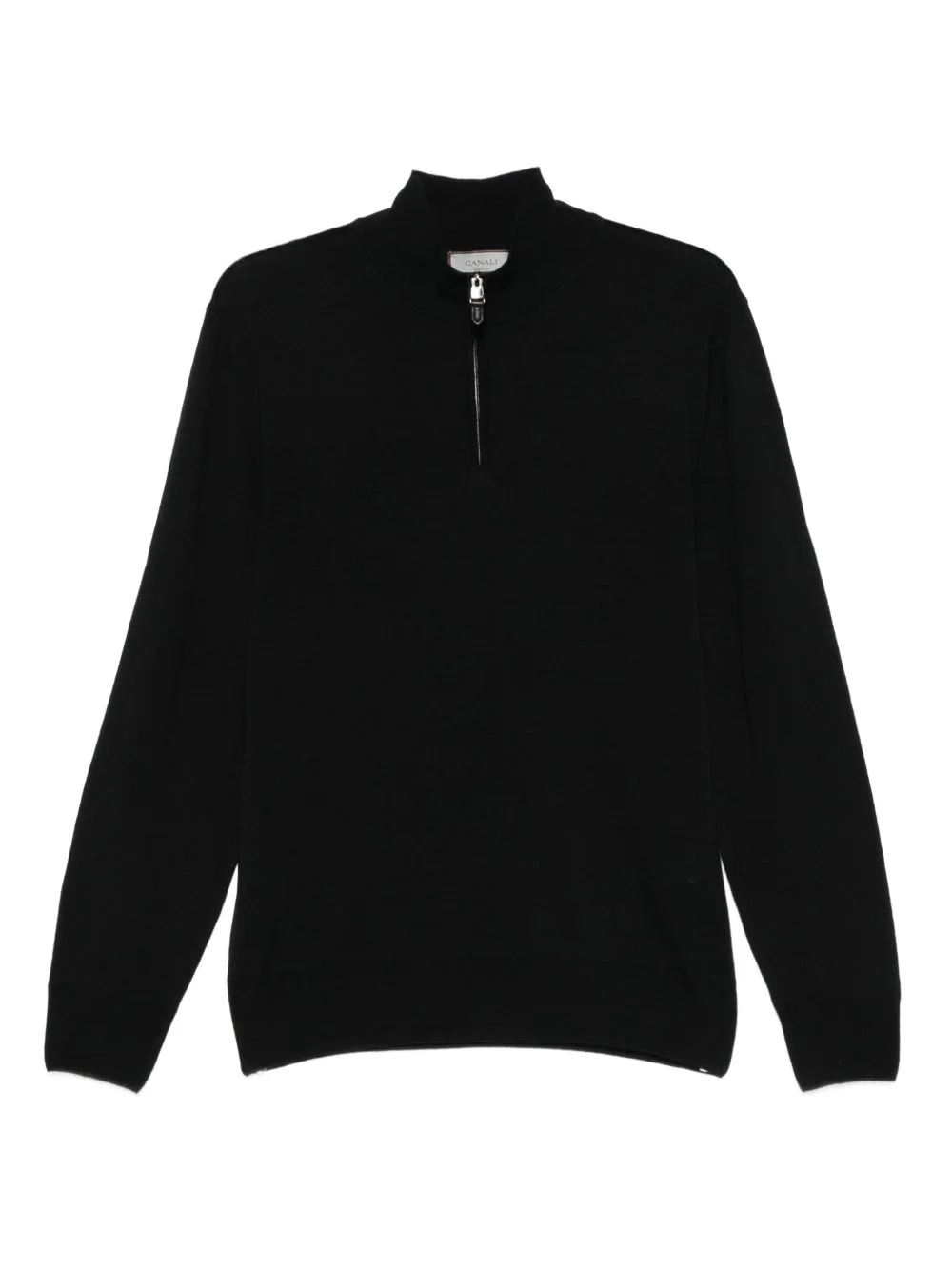 high-neck zip-front sweater Highlights - Black - High neck - Zip front - Long sleeves - Wool Made in Italy Composition Wool 100% SIZE & FIT Model measurements Height 6 ft 2 in(1.87 m) Bust/Chest 36.41 in(92.5 cm) Hips 37 in(94 cm) Waist 29.52 in(75 cm) Washing instructions Hand Wash