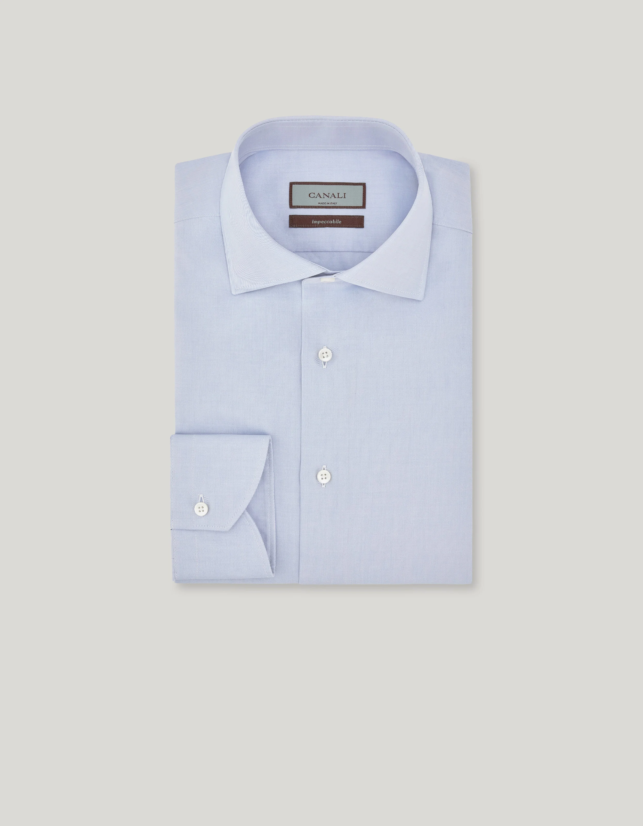 This shirt is made from pure Impeccabile cotton: a high-quality fabric that offers a truly flawless look. Presented in an evergreen colour in the comfortable lines of the regular fit, it represents a mix of style and functionality in the formal wardrobe of today's man. FABRICS AND CRAFTSMANSHIP - Formal shirt - Impeccabile fabric - Semi-spread collar - Collar height: 4.2 cm - Removable stays - Smooth back with no darts - Smooth front with no placket - Semi-rounded cuffs - 100% cotton - Made in Italy CARE Machine wash max 30° Do not bleach Normal steam or dry iron on low (110°) Do not dry clean Do not tumble dry FIT Regular Fit The model is wearing a size 48 The model measures: Height: 188 cm Chest: 94 cm Waist: 75 cm Hips: 93 cm