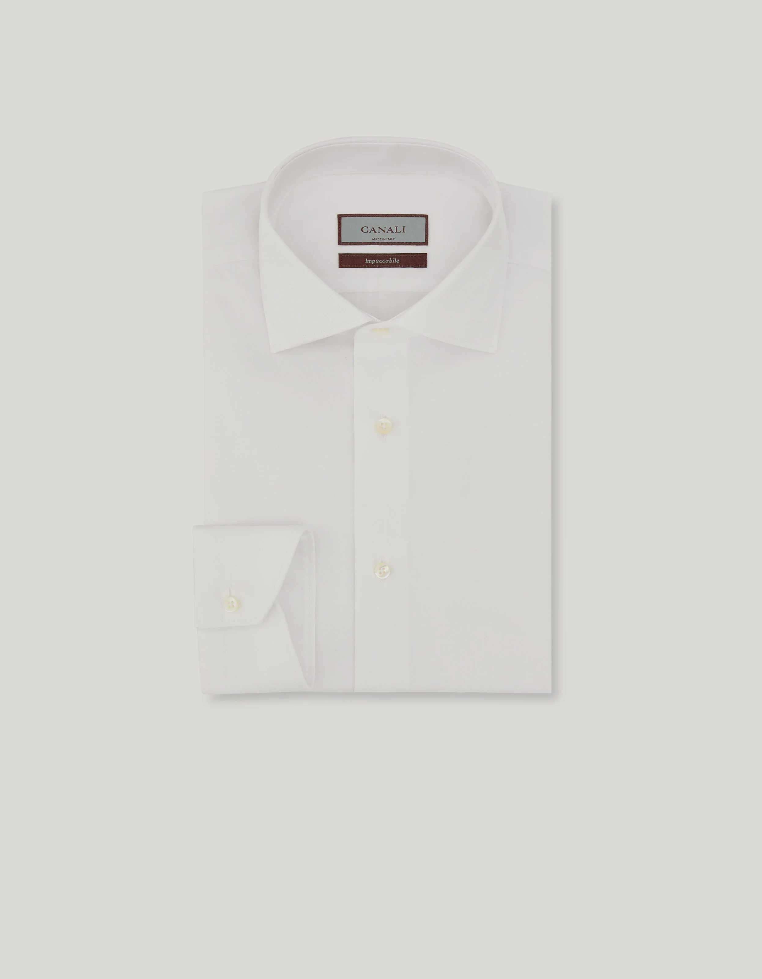This shirt is made from pure Impeccabile cotton: a high-quality fabric that offers a truly flawless look. Presented in an evergreen colour in the comfortable lines of the regular fit, it represents a mix of style and functionality in the formal wardrobe of today's man. FABRICS AND CRAFTSMANSHIP - Formal shirt - Impeccabile fabric - Semi-spread collar - Collar height: 4.2 cm - Removable stays - Smooth back with no darts - Smooth front with no placket - Semi-rounded cuffs - 100% cotton - Made in Italy CARE Machine wash max 30° Do not bleach Normal steam or dry iron on low (110°) Do not dry clean Do not tumble dry FIT Regular Fit The model is wearing a size 48 The model measures: Height: 188 cm Chest: 94 cm Waist: 75 cm Hips: 93 cm