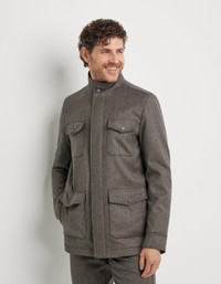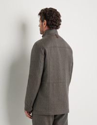 Field jacket in Impeccabile wool flannel - a high-quality fabric whose ability to resist wrinkling gives it a consistently flawless appearance - with removable technical fabric dickie and nappa leather details. Lightweight padding and an inner drawstring provide comfort, versatility and a polished style perfect for casually tackling dynamic days. A piece that combines functionality and sophistication, ideal for the modern man who seeks practicality without sacrificing elegance. FABRICS AND CRAFTSMANSHIP - Set-in sleeve field jacket - Removable dickie in technical fabric with knit collar and central zipper with leather pull - Hidden central fastening with hidden snap buttons - Patch chest pockets - Hand pockets with double entry - Cuffs with snap buttons - Nappa leather details - Genuine leather tag - Lightweight padding - Lined piece - Patch pockets - Inner piece adjustment with drawstring - 100% Wool - IMPECCABILE - Made in Italy CARE Do not wash with water Do not bleach Do not iron Gentle dry clean with hydrocarbon solvents Do not tumble dry FIT The model is wearing a size 50 The model measures: Height: 185 cm (72.8 in) Chest: 100 cm (39.4 in) Waist: 79 cm (31.1 in) Hips: 95 cm (37.4 in)