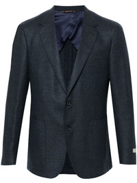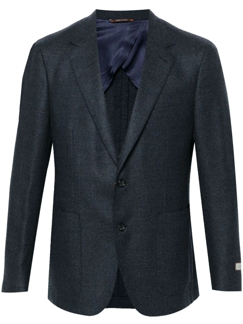 intarsia-knit blazer Highlights - Navy blue - Wool - Patterned intarsia knit - Front button fastening - Notched lapels - Long sleeves - Buttoned cuffs - Logo patch at the sleeve - Chest welt pocket - Dart detailing - Two front patch pockets - English rear vents - Partial lining - Straight hem Made in Italy Composition Lining: Cupro 100% Outer: Wool 100% SIZE & FIT Model measurements Height 6 ft 2 in(1.87 m) Bust/Chest 38.18 in(97 cm) Hips 36.61 in(93 cm) Waist 29.13 in(74 cm) FittingInformation Designed for a slim fit, offering a comfortable fit that sits just away from the body The vented hem offers movement at the rear Made from a midweight non-stretch fabric