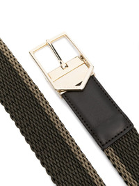 interwoven buckle belt Highlights - Khaki - Interwoven design - Rectangle shape - Leather trim - Gold-tone hardware - Buckle fastening - This piece comes complete with a protective dust bag. Made in Italy Composition Calf Leather 100%, Fabric 100% SIZE & FIT Measurement TOTAL LENGTH 37.4 in(95 cm) WIDTH 1.37 in(3.5 cm)