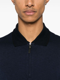 jersey polo shirt Highlights - Navy blue - Short front zip fastening - Polo collar - Long sleeves - Short side slits Made in Italy Composition Lyocell 50%, Cotton 50% SIZE & FIT Model measurements Height 6 ft 2 in(1.87 m) Bust/Chest 38.18 in(97 cm) Hips 36.61 in(93 cm) Waist 29.13 in(74 cm) FittingInformation Designed for a regular fit, this polo shirt offers a comfortable loose fit throughout the body Made from a midweight non-stretch fabric, this piece offers minimal elasticity when worn