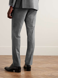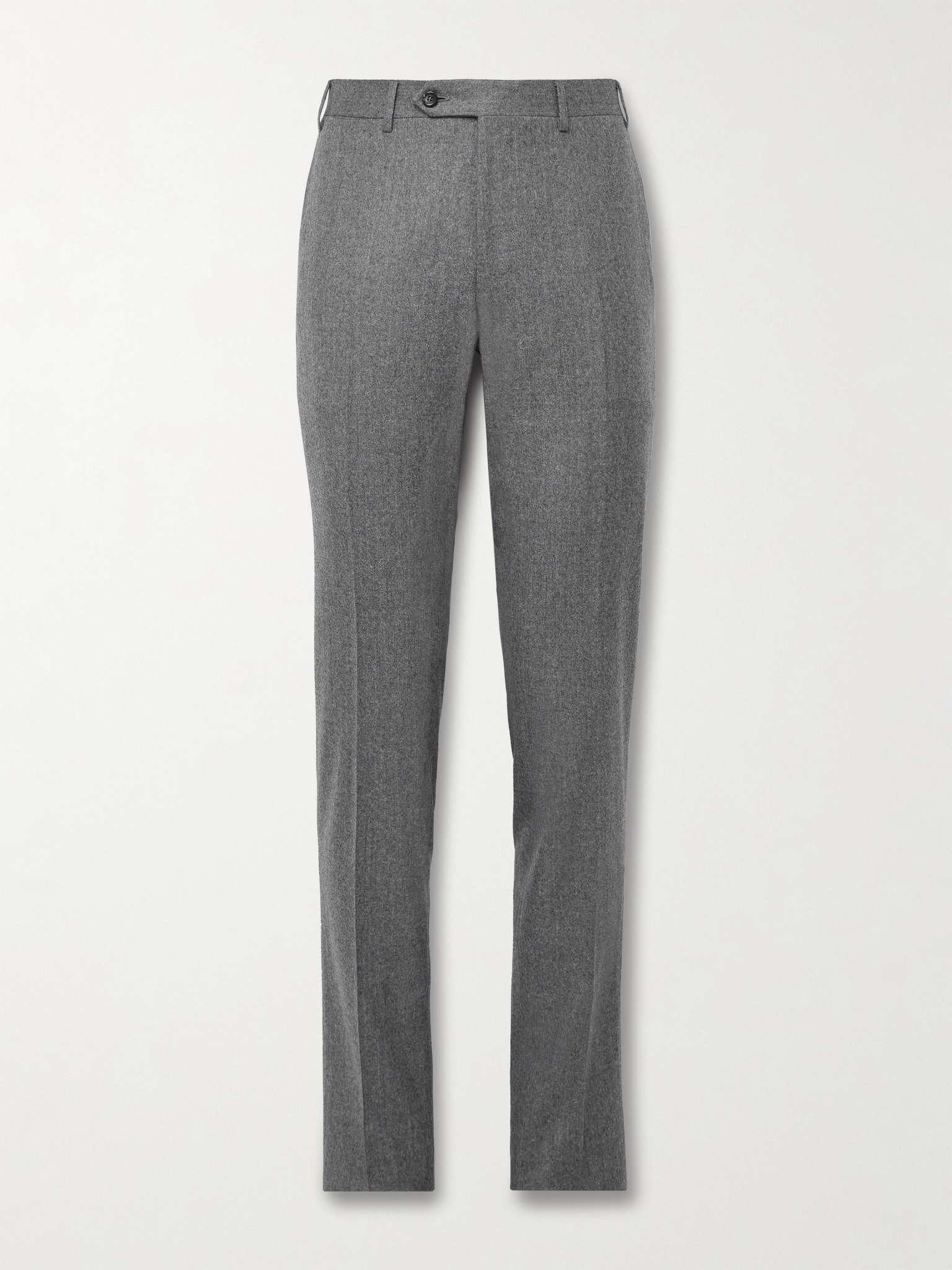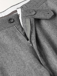 Canali's slim 'Kei' trousers fit so well because every component – from the front and back panels to the fly and waistband - is individually made and inspected before being assembled. This Super 120s wool-flannel pair is left with unfinished hems, so you can have them tailored to your preferred break. Size & Fit - Fits true to size. Take your normal size - Those with muscular legs may wish to take the next size up - Slim cut, mid-rise style - Unfinished hems; alter to fit - Lightweight, non-stretchy fabric - Model is shown wearing an IT 48 - Model measures: waist size 32, height 6'2"/ 188cm Details & Care - Anthracite mélange Super 120s wool-flannel - Belt loops, two front slash pockets, two back buttoned welt pockets, pressed creases, unfinished hems - Button and zip fastening - 100% wool; buttons: 100% horn (Buffalo) - Dry clean - This item has been imported