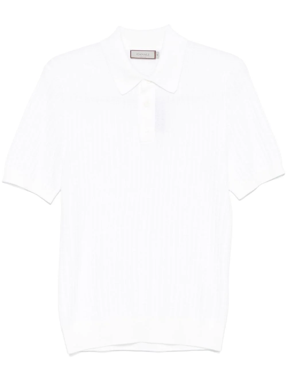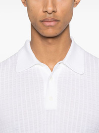 knitted polo shirt Highlights - White - Front button placket - Short sleeves - Ribbed cuffs and hem Made in Italy Composition Cotton 50%, Modal 50% SIZE & FIT Model measurements Height 6 ft 2 in(1.87 m) Bust/Chest 38.18 in(97 cm) Hips 36.61 in(93 cm) Waist 29.13 in(74 cm) FittingInformation Designed for a slim fit, this polo shirt offers a comfortable fit that sits just away from the body Made with a midweight knit, this piece offers some stretch Washing instructions Hand Wash