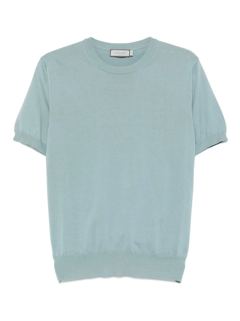 knitted T-shirt Highlights - Blue-grey - Crew neck - Short sleeves - Ribbed hem Made in Italy Composition Cotton 100% SIZE & FIT Model measurements Height 6 ft 2 in(1.87 m) Bust/Chest 38.97 in(99 cm) Hips 37.99 in(96.5 cm) Waist 29.52 in(75 cm) FittingInformation Designed for a slim fit, offering a comfortable fit that sits just away from the body Made with a midweight knit, this piece offers some stretch