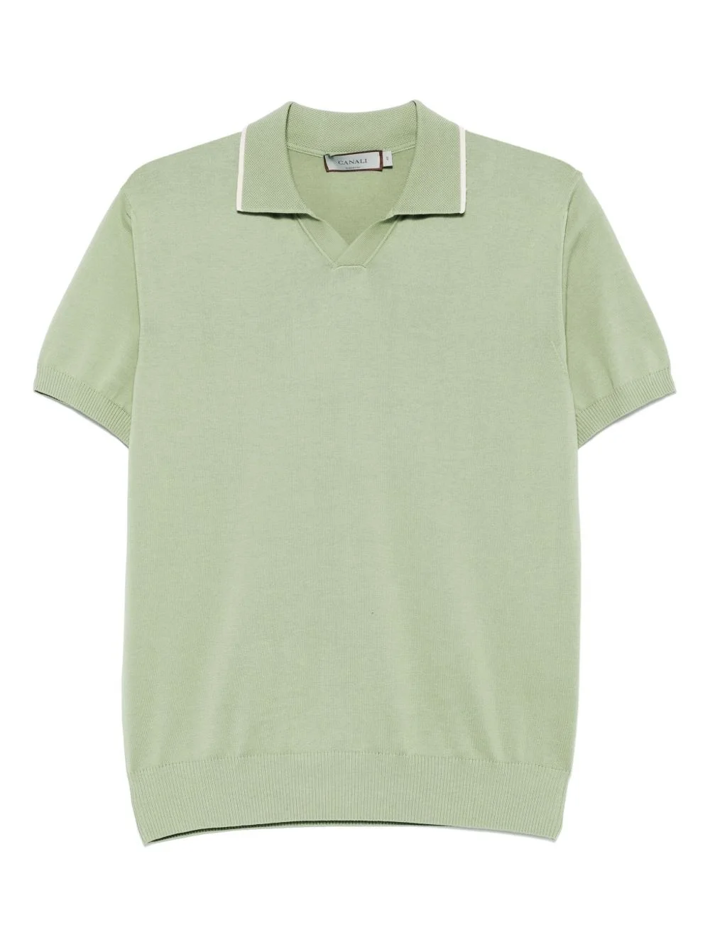 knitted T-shirt Highlights - Sage green - Ribbed cuffs and hem - Polo collar - Short sleeves Made in Italy Composition Cotton 100% SIZE & FIT Model measurements Height 6 ft 2 in(1.87 m) Bust/Chest 36.41 in(92.5 cm) Hips 37 in(94 cm) Waist 29.52 in(75 cm) FittingInformation Designed for a slim fit, offering a comfortable fit that sits just away from the body Made with a lightweight knit, this piece offers some stretch Washing instructions Hand Wash