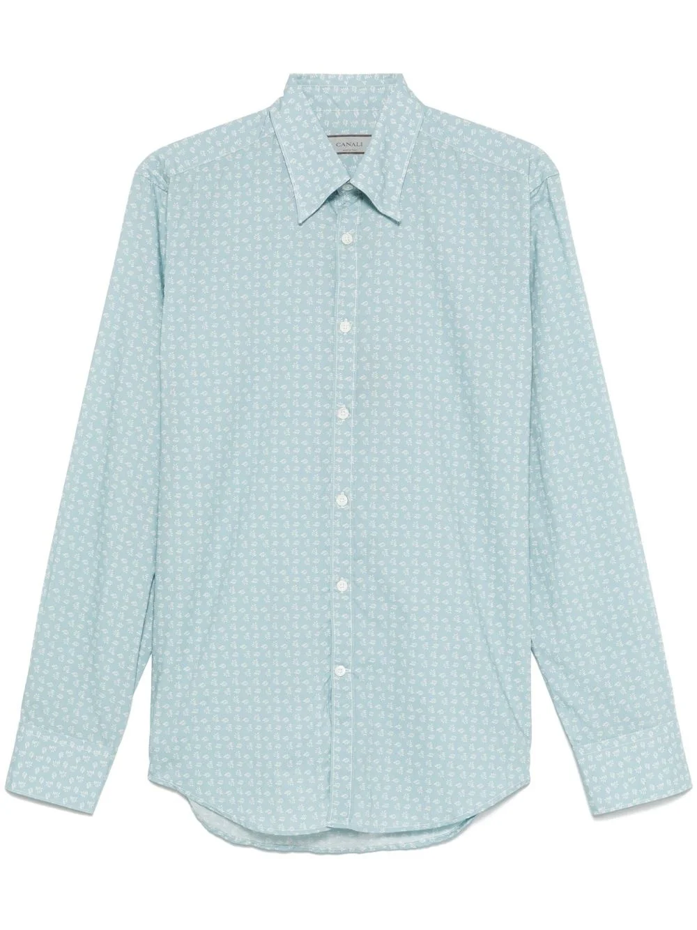 leaf-print shirt Highlights - Powder blue - Front button fastening - Buttoned cuffs - Classic collar - Long sleeves Made in Italy Composition Cotton 52%, Lyocell 48% SIZE & FIT FittingInformation Designed for a regular fit, allowing for a comfortably loose fit throughout the body Made from a midweight non-stretch fabric Washing instructions Machine Wash