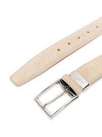 suede belt Highlights - Light beige - Pin-buckle fastening - Punched holes - Adjustable fit Made in Italy Composition Calf Suede 100%, Calf Leather 100% SIZE & FIT Measurement Minimum Length 36.22 in(92 cm) TOTAL LENGTH 40.15 in(102 cm) WIDTH 1.37 in(3.5 cm)