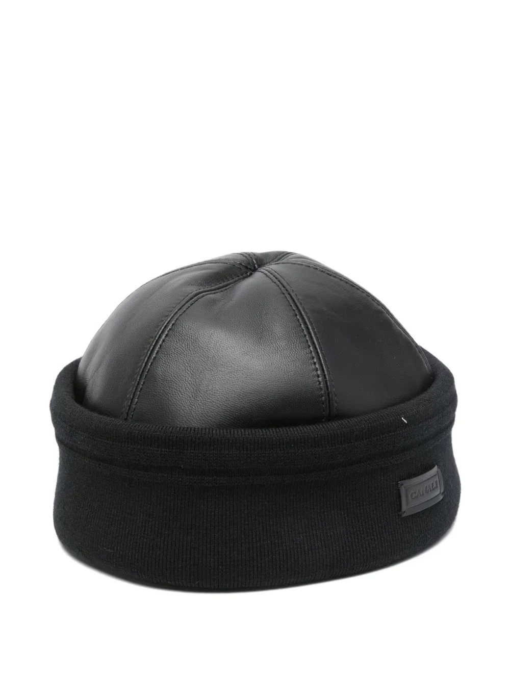 leather dome hat Highlights - Black - Leather upper - Cotton knit band - Dome crown - Flat top - Brand label Made in Italy Composition Lining: Cotton 100% Outer: Wool 60%, Sheepskin 40% SIZE & FIT Measurement CIRCUMFERENCE 22.04 in(56 cm) Washing instructions Dry Clean Only