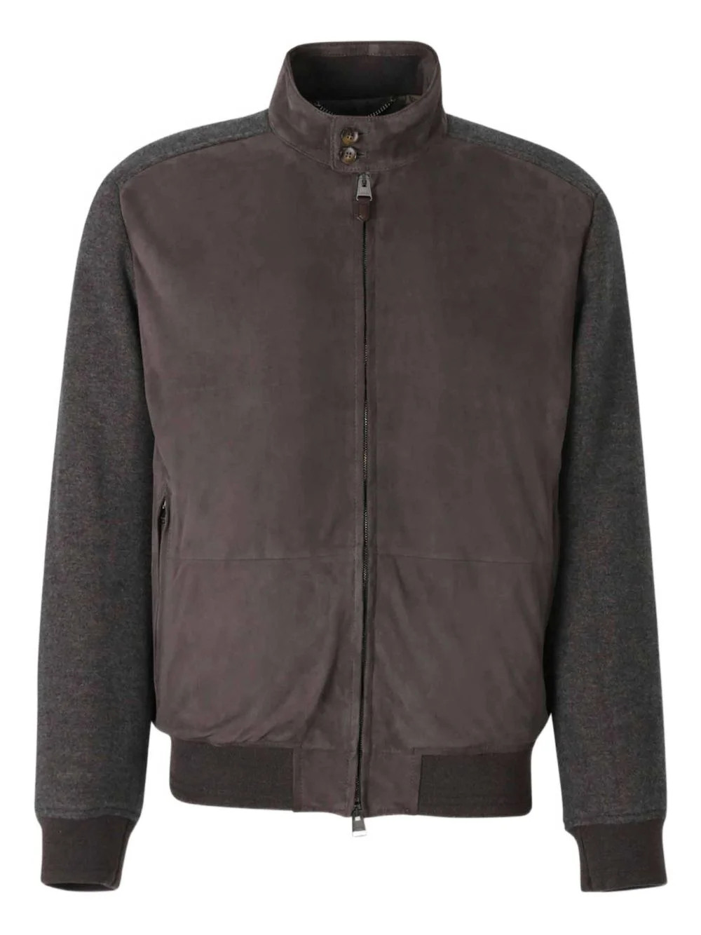 mock-neck bomber jacket Highlights - Brown - Stand-up collar - Front zip fastening - Fitted cuffs - Side pockets Made in Italy Composition Wool 80%, Polyester 20% Washing instructions Read Manufacturer Guidelines