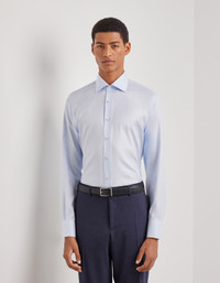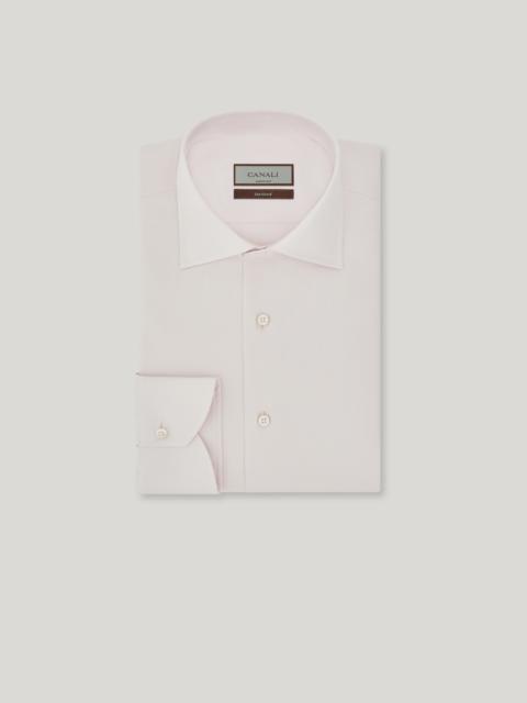 Twill cotton shirt with a timeless style, featuring a regular fit that enhances the silhouette. Embellished with mother-of-pearl buttons, a symbol of sophistication, and made of a fabric that promises exceptional comfort and durability, it is perfect for any occasion, from a day at the office to an elegant evening out. FABRICS AND CRAFTSMANSHIP - Formal shirt - Semi-spread collar - Collar height 4.2 cm - Plain front with no placket - Removable collar stiffeners - Plain back with no wrinkles - Semi-rounded cuff - Mother-of-pearl buttons - 100% Cotton - Made in Italy CARE Machine wash max 30° - delicate cycle Do not bleach Normal steam or dry iron on low (110°) Gentle dry clean with perchlorethylene Do not tumble dry FIT Regular fit The model is wearing a size 48 The model measures: Height: 186 cm (73.2 in) Chest: 81 cm (31.9 in) Waist: 70 cm (27.6 in) Hips: 82 cm (32.3 in)