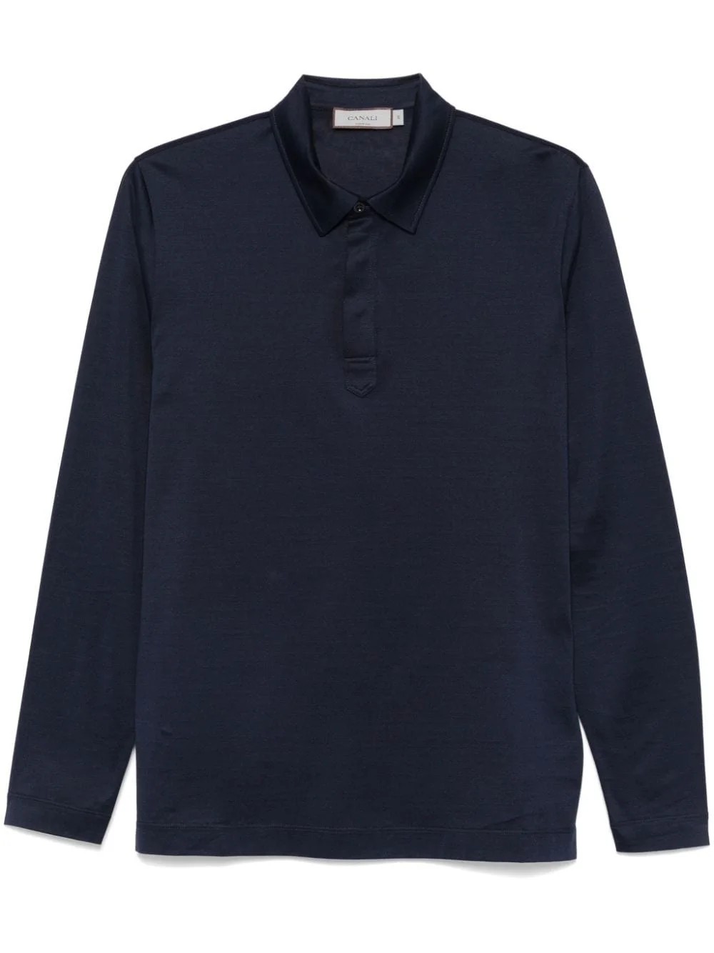 lightweight-jersey polo shirt Highlights - Navy blue - Cotton - Lightweight jersey - Short front button fastening - Polo collar - Long sleeves - Straight hem Made in Italy Composition Cotton 100% SIZE & FIT Model measurements Height 6 ft 2 in(1.87 m) Bust/Chest 37.79 in(96 cm) Hips 37.79 in(96 cm) Waist 30.31 in(77 cm) FittingInformation Designed for a regular fit, this polo shirt offers a comfortable loose fit throughout the body Made from a lightweight non-stretch fabric, this piece offers minimal elasticity when worn