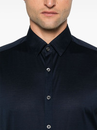 lightweight-jersey shirt Highlights - Navy blue - Cotton - Lightweight jersey - Front button fastening - Classic collar - Long sleeves - Buttoned cuffs - Curved hem Made in Italy Composition Cotton 100% SIZE & FIT Model measurements Height 6 ft 2 in(1.87 m) Bust/Chest 37.79 in(96 cm) Hips 37.79 in(96 cm) Waist 30.31 in(77 cm) Measurement CHEST 45.66 in(116 cm) SLEEVE LENGTH 36.61 in(93 cm) FittingInformation Designed for a slim fit, offering a comfortable fit that sits just away from the body Made from a lightweight non-stretch fabric, this piece offers minimal elasticity when worn