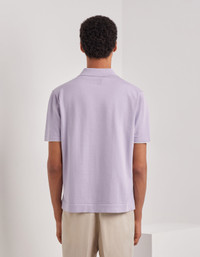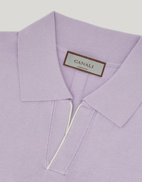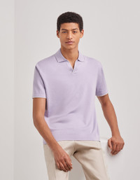 Short-sleeved polo shirt with open collar made from a cotton-silk blend with a soft, lightweight feel. The refined contrasting piping along the collar and sleeves adds a distinctive detail to the essential design, while the plain-knit workmanship and ribbed trim enhance the line with balance and restraint. A garment that casually interprets the relaxed elegance of the contemporary man. FABRICS AND CRAFTSMANSHIP - Short-sleeved open-collar polo shirt - Ribbed collar, hem, and sleeve edges - Contrasting piping details - Plain knit - 18 gauge - 80% Cotton 20% Silk - Closed hem - Made in Italy CARE Hand wash max 40° Do not bleach Normal steam or dry iron on low (110°) Gentle dry clean with perchlorethylene Dry flat FIT The model is wearing a size 50 The model measures: Height: 185 cm (72.8 in) Chest: 100 cm (39.4 in) Waist: 79 cm (31.1 in) Hips: 95 cm (37.4 in)