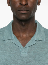 linen T-shirt Highlights - Steel blue - Polo collar - Split neck - Short side slits Made in Italy Composition Linen/Flax 100% SIZE & FIT Model measurements Height 6 ft 2 in(1.87 m) Bust/Chest 36.41 in(92.5 cm) Hips 37 in(94 cm) Waist 29.52 in(75 cm) FittingInformation Designed for a relaxed fit, this piece allows for comfort and movement when worn Made from a midweight non-stretch fabric, this piece offers minimal elasticity when worn Washing instructions Machine Wash