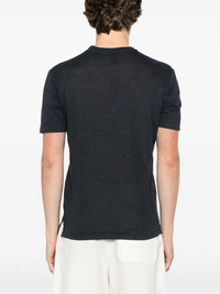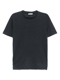 linen T-shirt Highlights - Navy blue - Crew neck - Short sleeves - Straight hem Made in Italy Composition Linen/Flax 100% SIZE & FIT Model measurements Height 6 ft 2 in(1.87 m) Bust/Chest 38.97 in(99 cm) Hips 37.99 in(96.5 cm) Waist 29.52 in(75 cm) FittingInformation Designed for a slim fit, offering a comfortable fit that sits just away from the body Made from a midweight non-stretch fabric, this piece offers minimal elasticity when worn