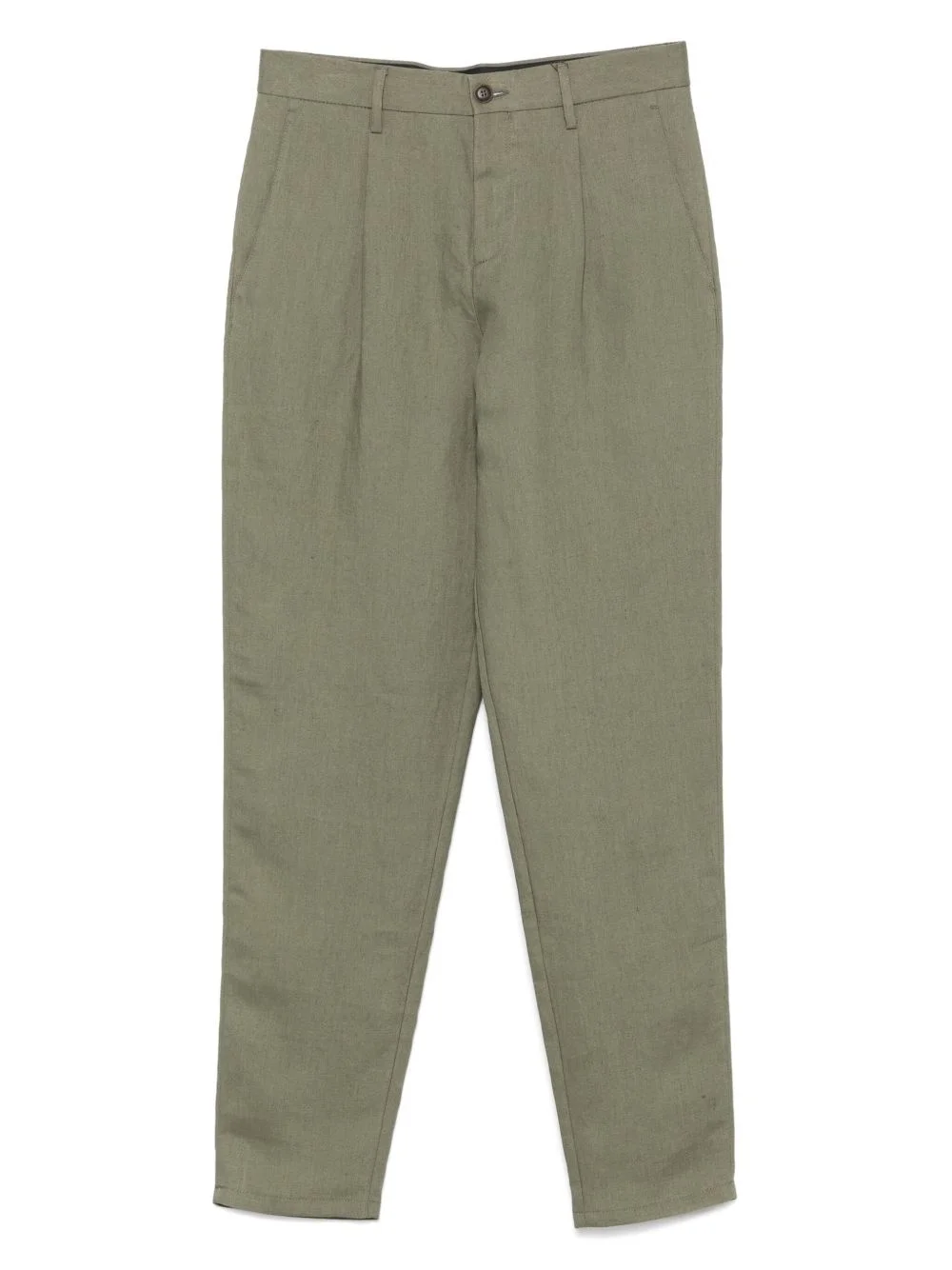 linen trousers Highlights - Asparagus green - Front button and zip fastening - Two side slit pockets - Two rear jetted pockets - Pleat detailing Made in Italy Composition Linen/Flax 100%