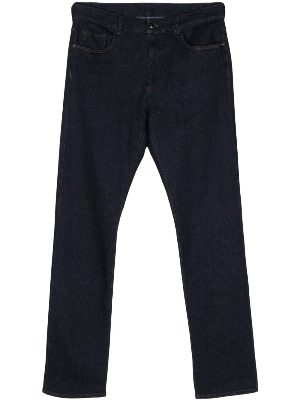 logo-patch straight jeans Highlights - Indigo blue - Cotton blend - Denim - Logo-debossed patch to the rear - Belt loops - Front button and zip fastening - Straight leg - Classic five pockets - Straight hem Made in Italy Composition Cotton 98%, Elastane 2%