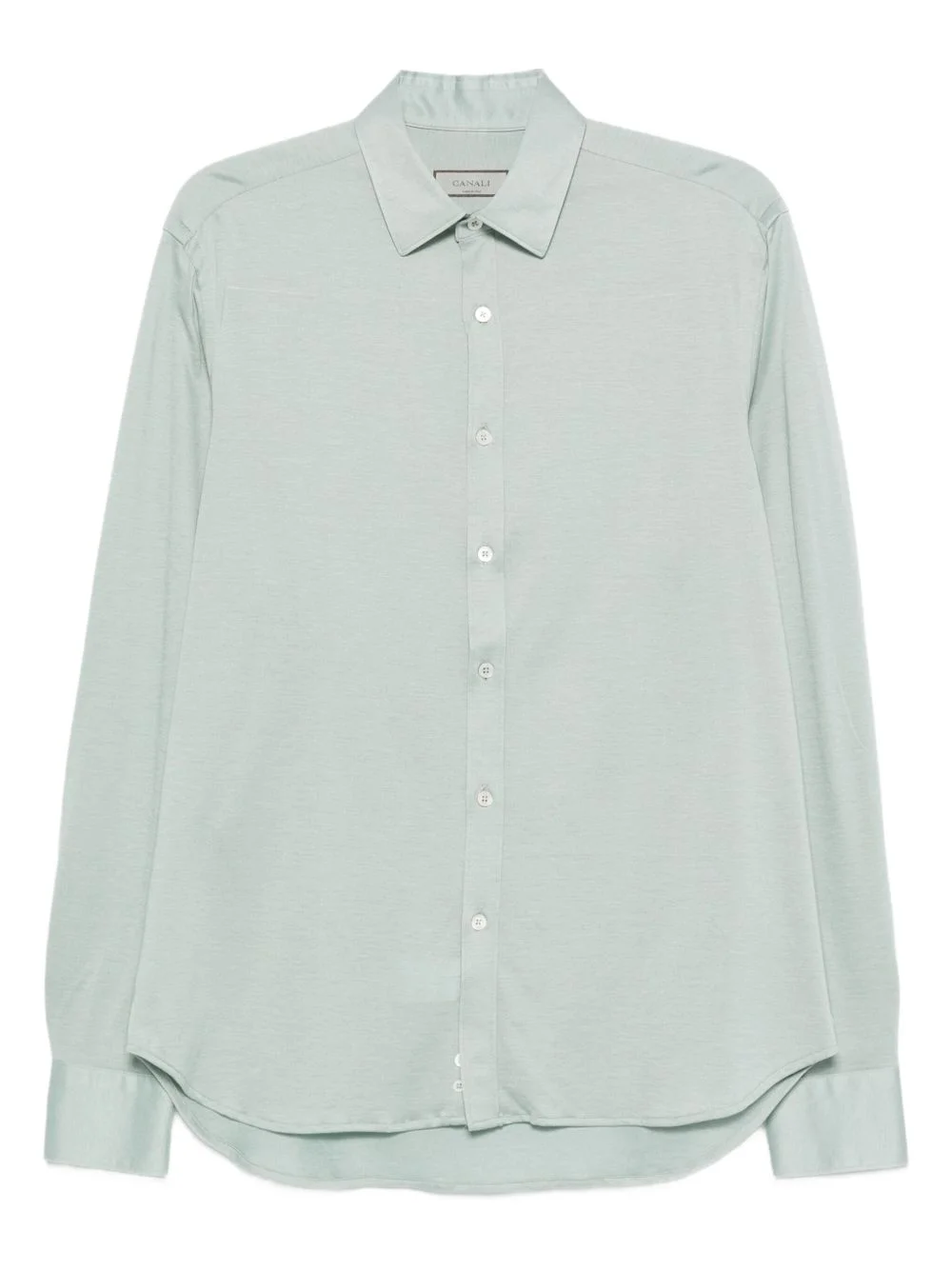long-sleeve cotton-blend shirt Highlights - Green - Cotton-blend - Button fastening - Classic collar - Long sleeves - Curved hem Made in Italy Composition Cotton 50%, Lyocell 50% Washing instructions Machine Wash