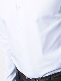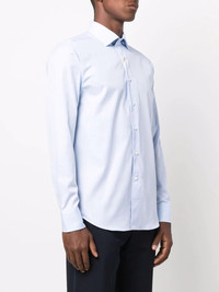 plain button shirt light blue cotton classic collar front button fastening long sleeves buttoned cuffs curved hem Made in Italy Composition Cotton 100% SIZE & FIT Model measurements Height 6 ft 1 in(1.86 m) Bust/Chest 36.61 in(93 cm) Hips 36.61 in(93 cm) Waist 29.92 in(76 cm) Measurement CHEST 42.12 in(107 cm) SLEEVE LENGTH 25.98 in(66 cm) FittingInformation This piece fits true to size. We recommend you get your regular size Cut for a loose fit Made with a mid-weight non-stretch fabric Washing instructions Machine Wash