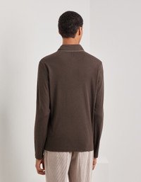 This short sleeved crew neck T-shirt, made of a fine blend of cotton and cashmere, is embellished with contrasting details that define the collar and sleeves, emphasizing the elegant and sporty aesthetic at the same time. The ideal choice for those seeking a piece capable of combining elegance and comfort, perfect for enhancing the silhouette without sacrificing everyday practicality. FABRICS AND CRAFTSMANSHIP - Short sleeved crew neck - Ribbed collar and sleeves - Contrast ribbed piping - Side slits - 90% cotton 10% cashmere - Made in Italy CARE Hand wash max 40° Do not bleach Normal steam or dry iron on low (110°) Gentle dry clean with perchlorethylene Dry flat FIT The model is wearing a size 48 The model measures: Height: 186 cm (73.2 in) Chest: 81 cm (31.9 in) Waist: 70 cm (27.6 in) Hips: 82 cm (32.3 in)