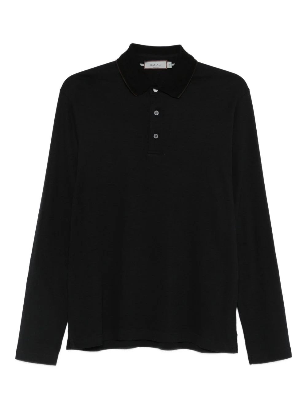 long-sleeve polo shirt Highlights - Black - Short front button closure - Long sleeves - Polo collar - Tonal stitching Made in Italy Composition Cotton 90%, Cashmere 10% SIZE & FIT Model measurements Height 6 ft 3 in(1.9 m) Bust/Chest 35.43 in(90 cm) Hips 35.82 in(91 cm) Waist 27.95 in(71 cm) Washing instructions Read Manufacturer Guidelines