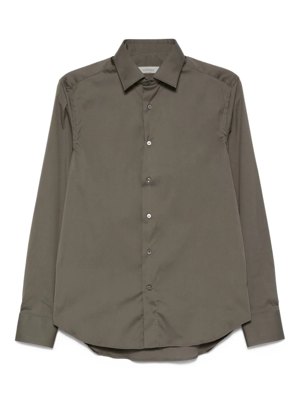 long-sleeve shirt Highlights - Olive green - Cotton-blend - Button fastening - Point collar - Long sleeves - Buttoned cuffs Made in Italy Composition Cotton 80%, Polyamide 18%, Elastane 2% Washing instructions Machine Wash