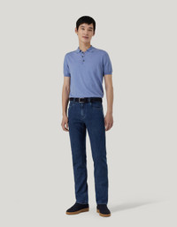 Five-pocket stretch denim pants with a sophisticated design, made with the defined lines of the regular fit. Stylish details, such as the washable genuine leather label, enhance the uniqueness of this casual garment, designed to add a sophisticated and personal twist to the more casual looks of today's gentleman. FABRICS AND CRAFTSMANSHIP - Five-pocket denim jeans - Regular Fit - Central fly with a metal button - Rear patch pockets - Washable genuine leather label on the back of the waistband - Hem: 19 cm - Stretch denim - 10 oz - 98% cotton 2% elastomer - Made in Italy CARE - Machine wash max 30° - delicate cycle - Do not bleach - Normal steam or dry iron on low (110°) - Do not dry clean - Do not tumble dry FIT Regular Fit The model is wearing a size 48 The model measures: Height: 188 cm Chest: 93 cm Waist: 73 cm Hips: 91 cm