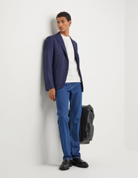 Five-pocket cashmere blend denim pants made to offer the perfect balance of functionality and sophistication. The exclusive fabric combines the strength of cotton with the softness of cashmere, ensuring comfort and high performance. The regular fit naturally flatters the figure, making these pants an ideal choice for facing every day with effortless elegance. FABRICS AND CRAFTSMANSHIP - Denim five-pockets - Regular fit - Central fastening with metal button - Back patch pockets - Washable genuine leather back strap label - Hem 19 cm - Cashmere blend denim - Oz 9.5 - 93% Cotton 6% Cashmere 1% Elastane - Made in Italy CARE Machine wash max 30° - delicate cycle Do not bleach Normal steam or dry iron on low (110°) Do not dry clean Do not tumble dry FIT Regular fit The model is wearing a size 48 The model measures: Height: 186 cm (73.2 in) Chest: 81 cm (31.9 in) Waist: 70 cm (27.6 in) Hips: 82 cm (32.3 in)