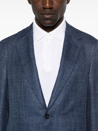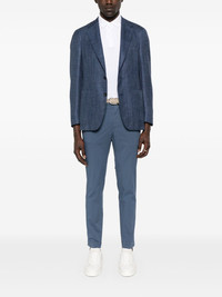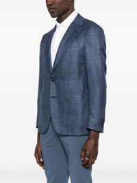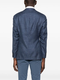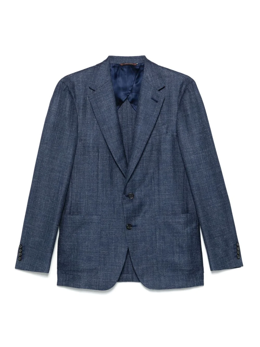 melange-effect blazer Highlights - Navy blue - Front button fastening - Chest welt pocket - English rear vents - Internal slip pocket Made in Italy Composition Outer: Wool 65%, Silk 21%, Linen/Flax 14% Lining: Cupro 100% SIZE & FIT Model measurements Height 6 ft 0 in(1.84 m) Bust/Chest 37.79 in(96 cm) Hips 37 in(94 cm) Waist 31.49 in(80 cm) FittingInformation Designed for a slim fit, offering a comfortable fit that sits just away from the body The vented hem offers movement at the rear Made from a midweight non-stretch fabric Washing instructions Dry Clean Only