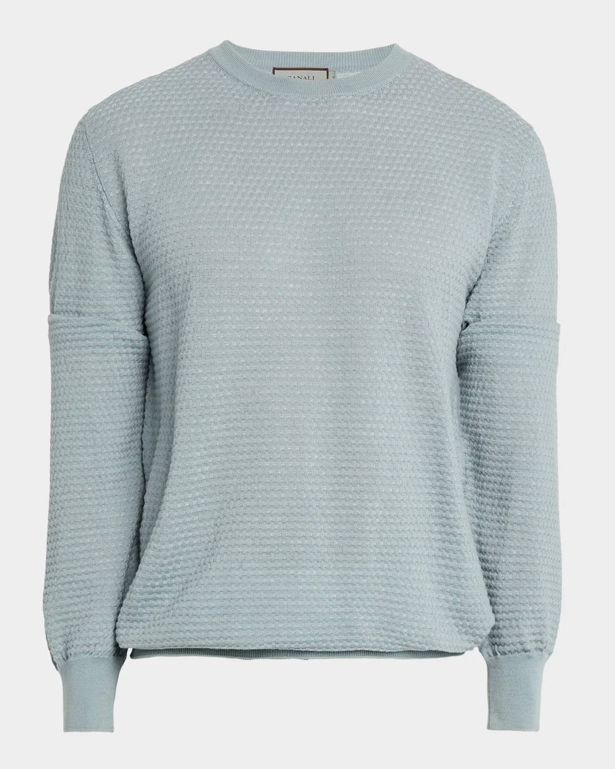 Canali sweater in a geometric jacquard wool knit for an elevated textural interest Crew neckline Long sleeves Ribbed cuffs and hem Pullover style Wool Dry clean Made in Italy