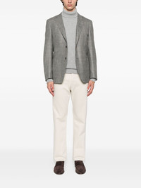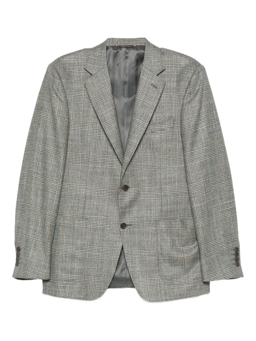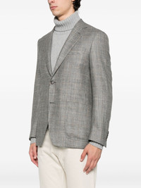 checked two-button blazer Highlights - Grey - Checked pattern - Two-button fastening - Notched lapel - Long sleeves - Patch pockets Made in Italy Composition Lining: Cupro 100% Outer: Wool 86%, Silk 10%, Cashmere 4% SIZE & FIT Model measurements Height 6 ft 2 in(1.88 m) Bust/Chest 37.4 in(95 cm) Hips 38.58 in(98 cm) Waist 31.1 in(79 cm) Washing instructions Dry Clean Only