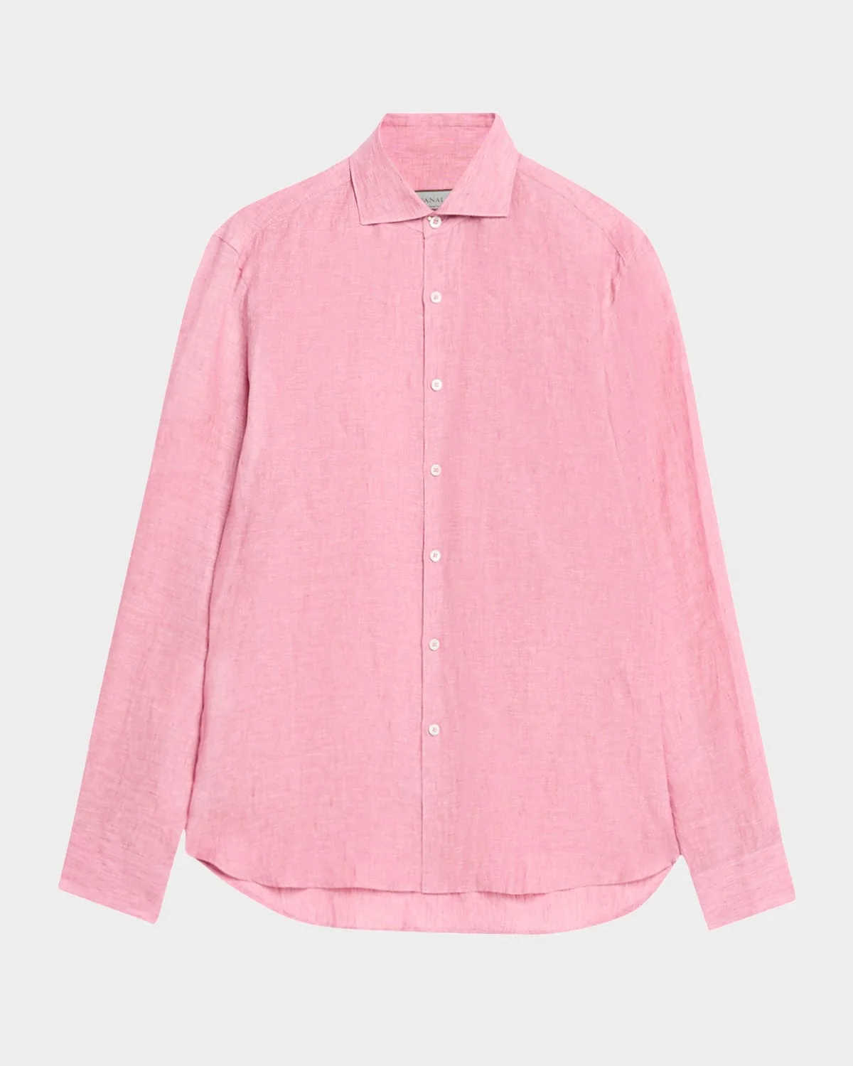 - Canali casual button-down shirt in linen - Spread collar - Button placket - Long sleeves - Round barrel cuffs - Back yoke - Shirttail hem - Linen - Dry clean - Made in Italy