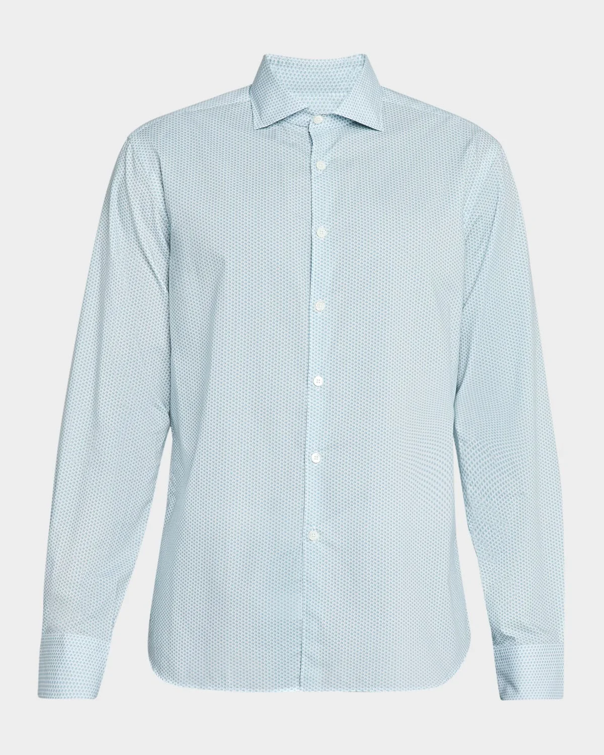 - Canali sport shirt featuring a micro-geometric print - Spread collar - Button placket - Long sleeves - Round barrel cuffs - Back yoke - Shirttail hem - Cotton/lyocell - Dry clean - Made in Italy