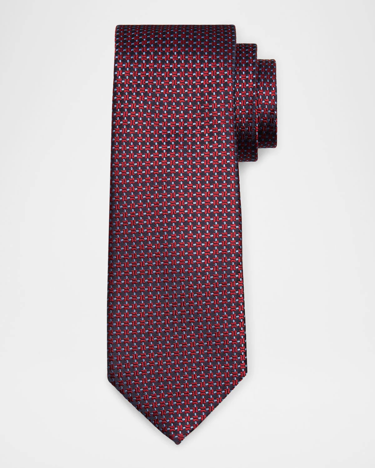A neat jacquard woven pattern accents the lustrous silk threads on this premium Canali tie Silk Dry clean Made in Italy