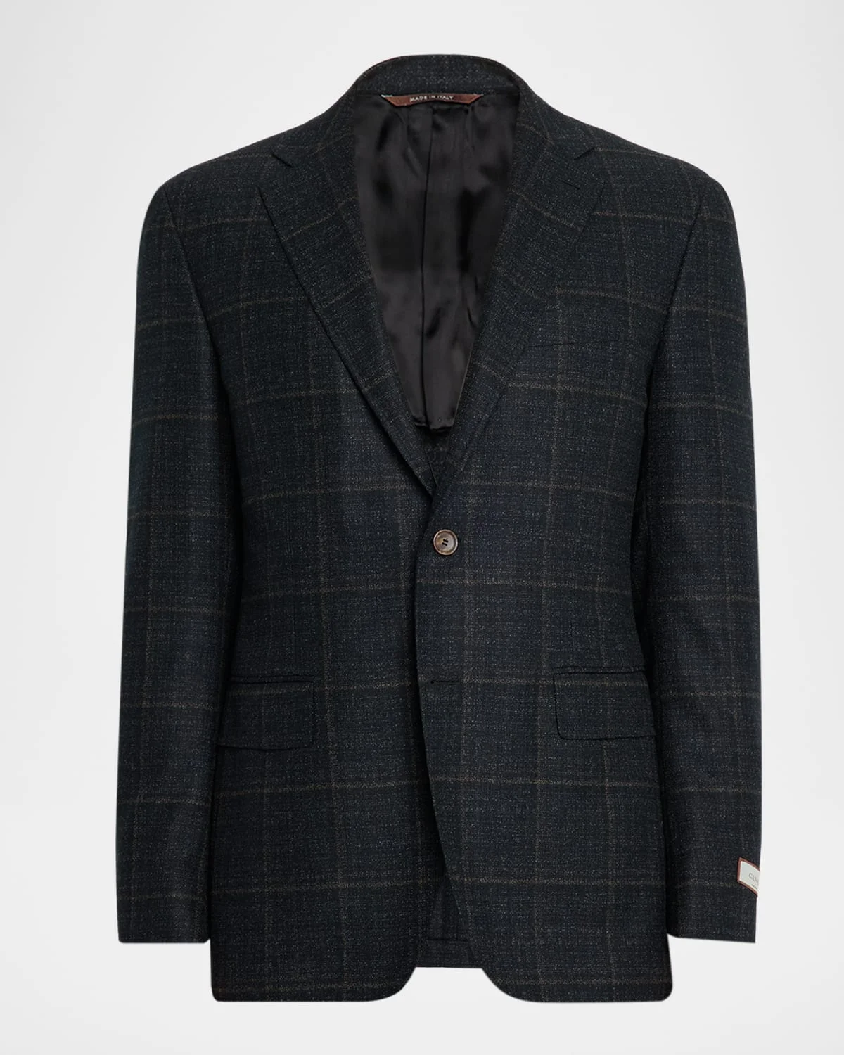 Canali wool sport coat in plaid Notched lapels Twobutton closure Chest welt pocket; inner ticket pocket Hip flap pockets Unfinished sleeves Doublevented back Wool Lining: Cupro Dry clean Made in Italy