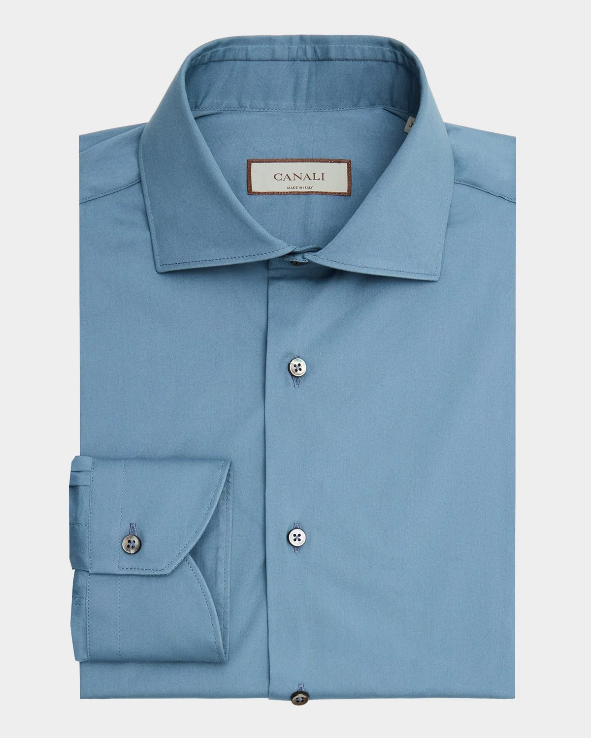 - Canali dress shirt in a premium cotton blend - Spread collar - Button placket - Long sleeves - Single-button cuffs - Shirttail hem - Classic fit - Cotton/nylon/polyamide/elastane - Machine wash, line dry - Made in Italy